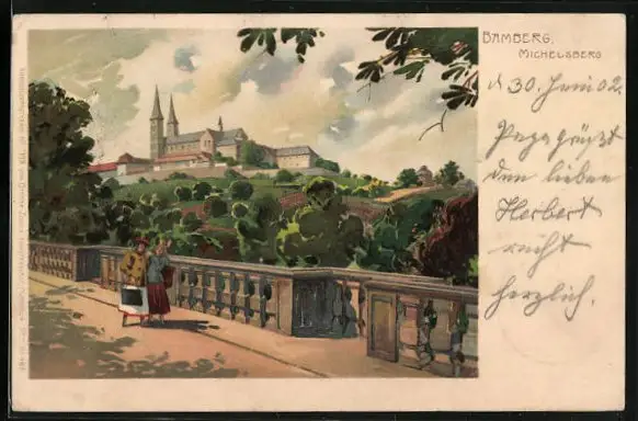 AK Bamberg, Michelsberg mit Spaziergängerinnen