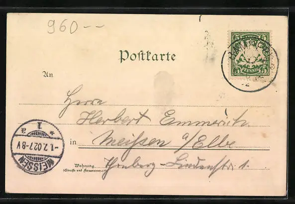 alte Ansichtskarte, gelaufen 1902, guter Zustand