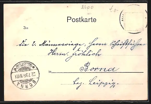 alte Ansichtskarte, gelaufen 1899, Briefmarke entfernt, guter Zustand