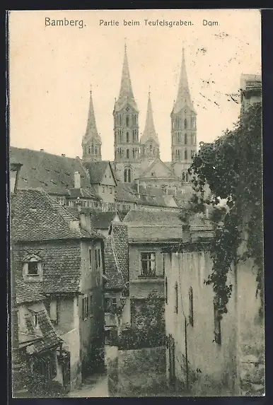 AK Bamberg, Partie am Teufelsgraben mit Blick zum Dom