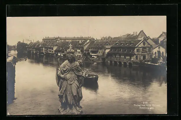 AK Bamberg, Regnitzpartie mit hl. Kunigunde