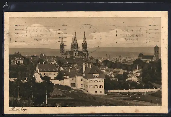 AK Bamberg, Teilansicht mit Dom aus der Vogelschau