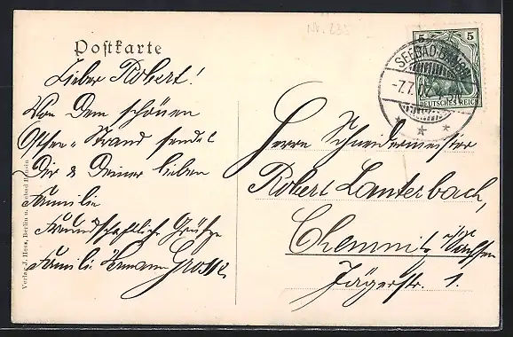 alte Ansichtskarte, gelaufen 1907, Stempelspur, guter Zustand