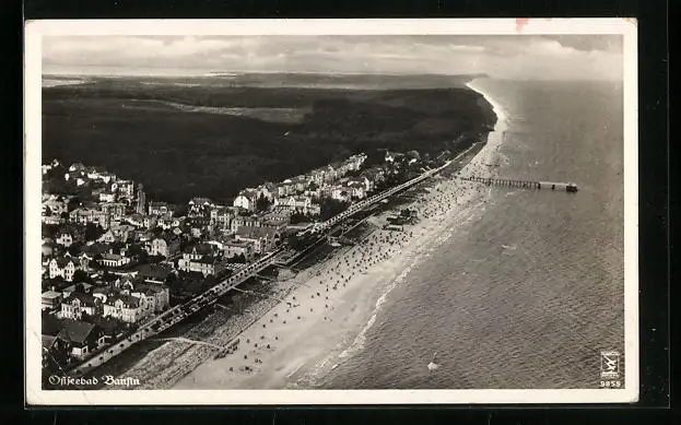 AK Bansin, Generalansicht des Ostseebads, Fliegeraufnahme