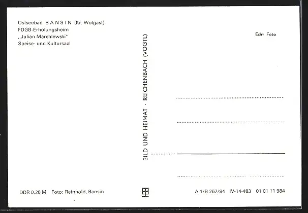 AK Bansin /Kr. Wolgast, FDGB-Erholungsheim Julian Marchlewski
