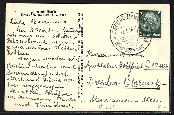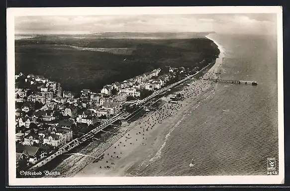 AK Bansin, Panorama mit Strand, Luftaufnahme