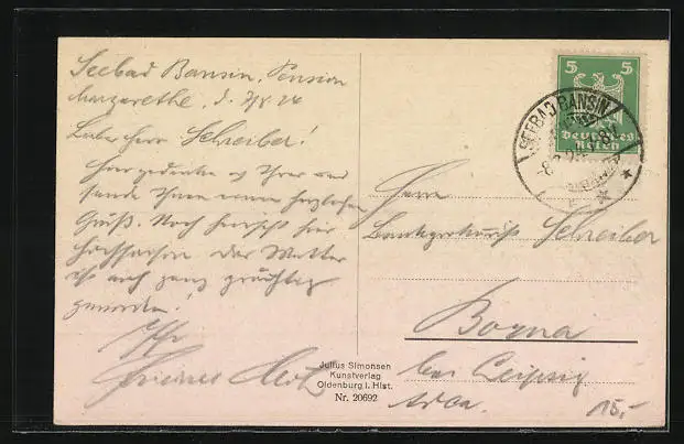 alte Ansichtskarte, gelaufen 1924, guter Zustand