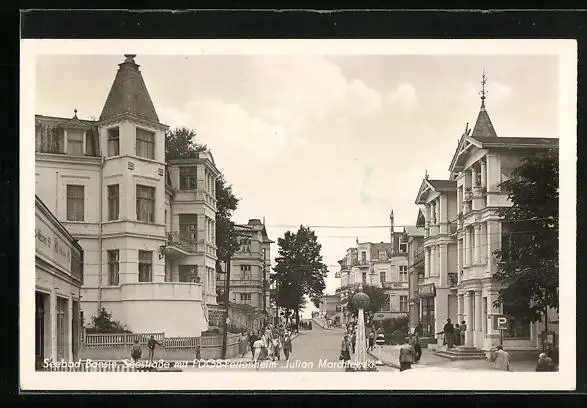 AK Bansin, Seestrasse mit FDGB-Ferienheim Julian Marchlewski