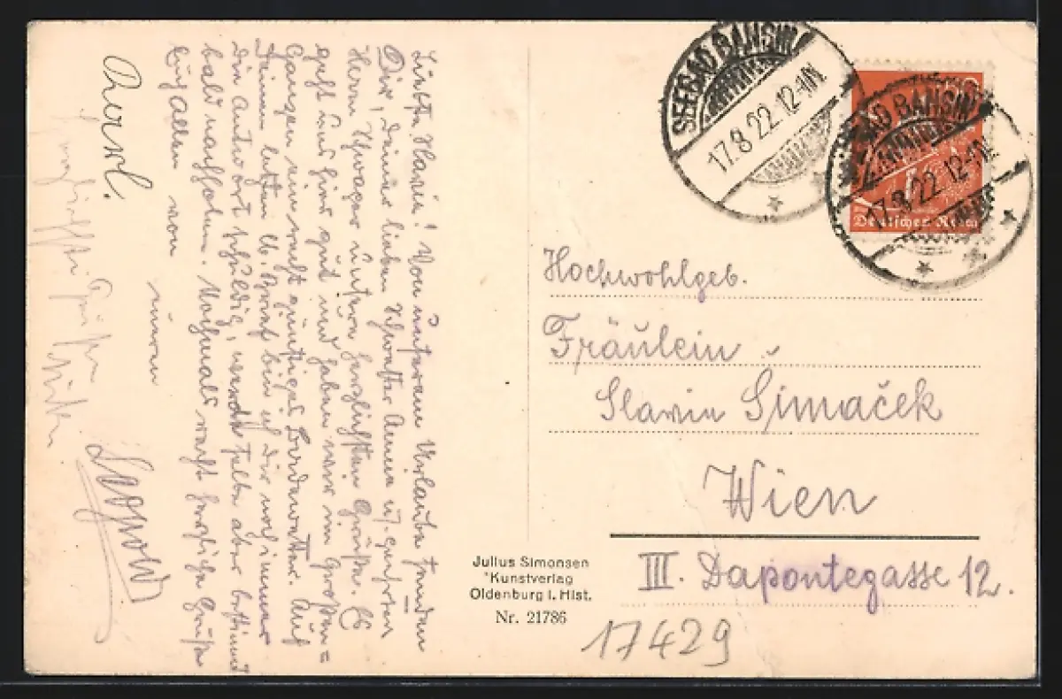 alte Ansichtskarte, gelaufen 1922, guter Zustand