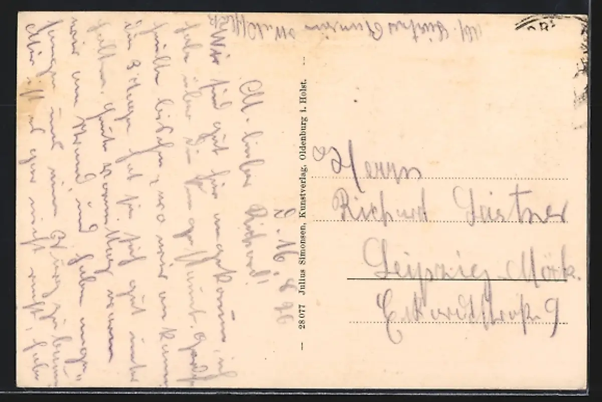 alte Ansichtskarte, gelaufen, Briefmarke entfernt, Stempelspur, guter Zustand