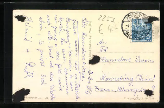 alte Ansichtskarte, gelaufen 1956, rückseitig Klebe- und Papierreste, guter Zustand