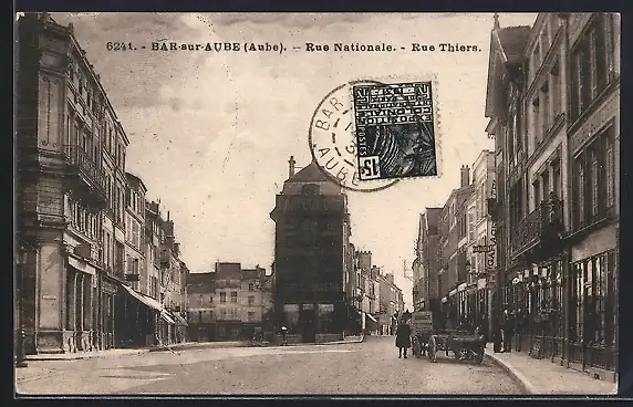 AK Bar-sur-Aube, Rue Nationale et Rue Thiers avec bâtiments historiques