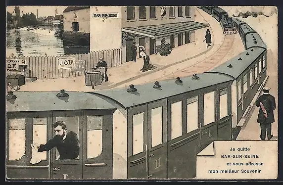 AK Bar-sur-Seine, Eisenbahn fährt im Bahnhof ein