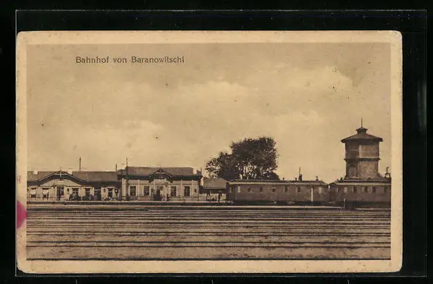 AK Baranowitschi, Bahnhof mit Eisenbahn und Turm