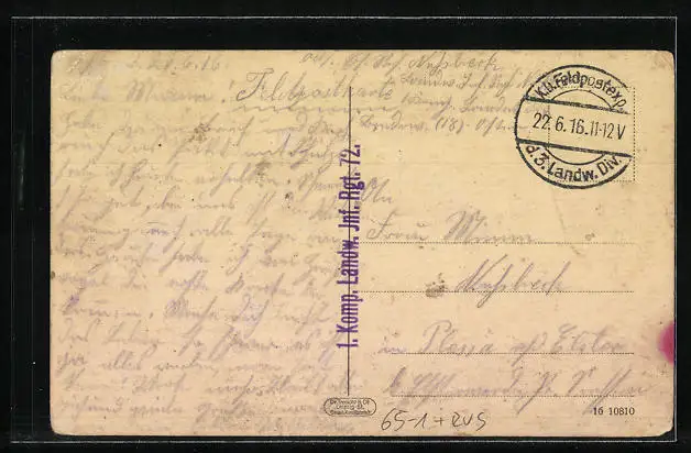 alte Ansichtskarte, gelaufen 1916, Ecken bestoßen, Eckknick oben re., guter Zustand