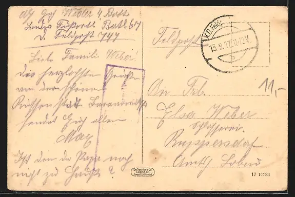 alte Ansichtskarte, gelaufen 1917, Bugspur li. oben, guter Zustand