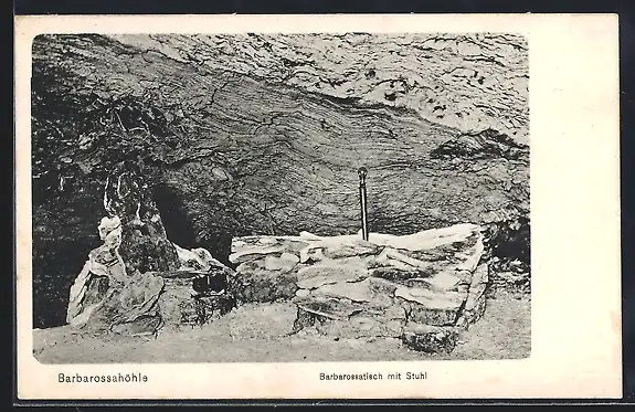 AK Barbarossahöhle, Barbarossatisch mit Stuhl