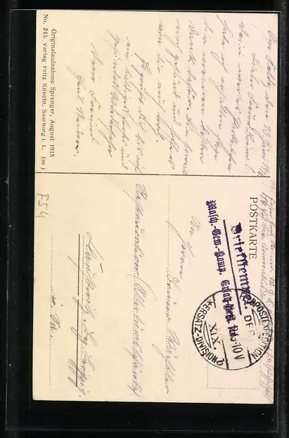 gelaufen 1916, Eckknicke li. oben u. re. unten, guter Zustand