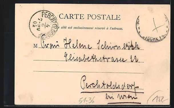 alte Ansichtskarte, gelaufen 1904, Briefmarke entfernt, guter Zustand
