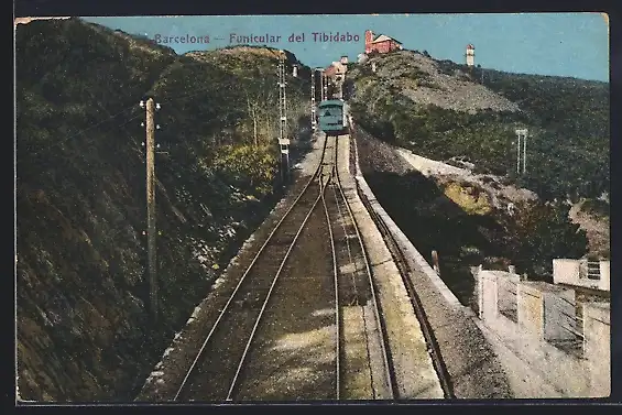 AK Barcelona, Funicular del Tibidabo, Bergbahn