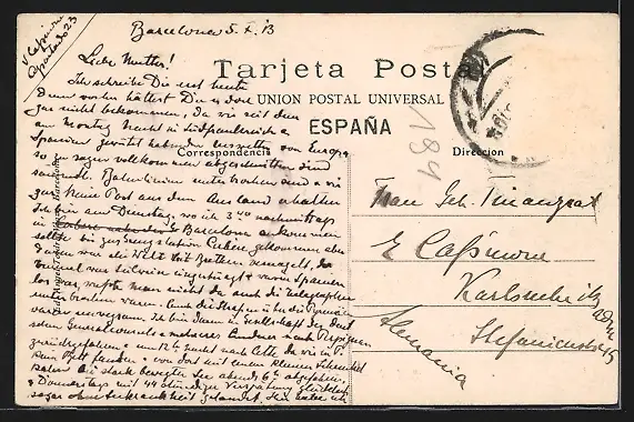 alte Ansichtskarte, gelaufen 1913, Briefmarke entfernt, guter Zustand