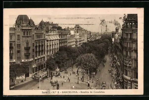 AK Barcelona, Rambla de Canaletas, Strassenbahn