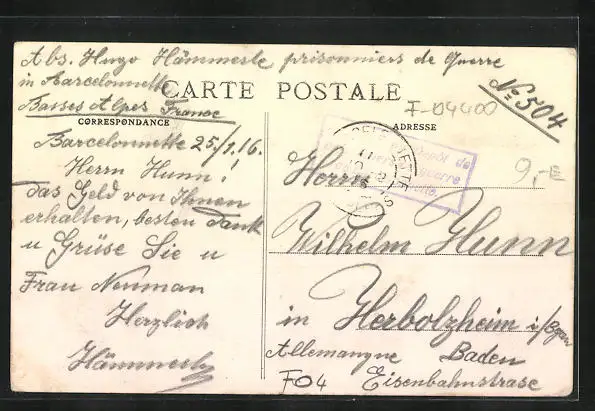 alte Ansichtskarte, gelaufen 1916 als Feldpost, guter Zustand