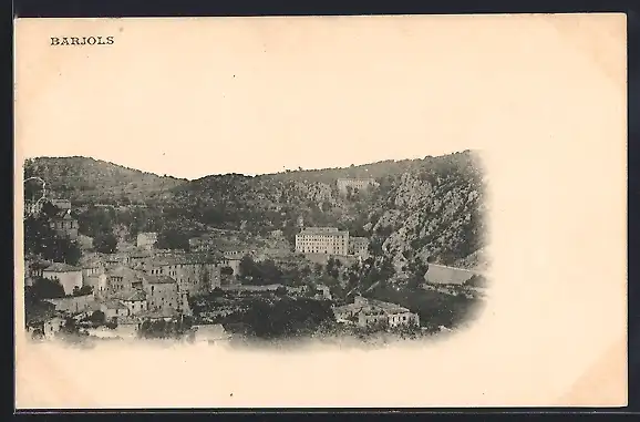 AK Barjols, Vue d`ensemble du village et des collines rocheuses environnantes