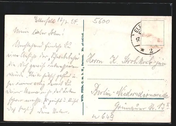 alte Ansichtskarte, gelaufen, Briefmarke entfernt, guter Zustand