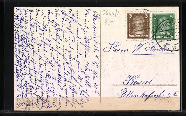 alte Ansichtskarte, gelaufen 1927, rückseitig Klebe- und Papierreste, guter Zustand