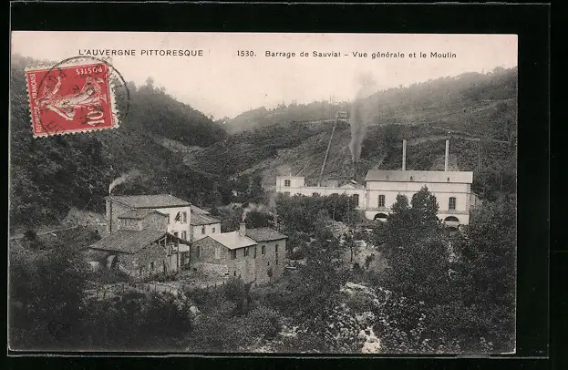 AK Barrage de Sauviat, Vue generale et le Moulin