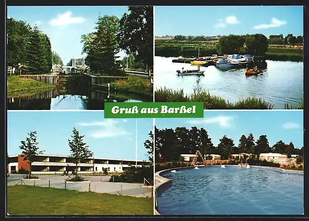 AK Barssel, Motorboote auf dem Fluss, Schleuse und Schwimmbecken
