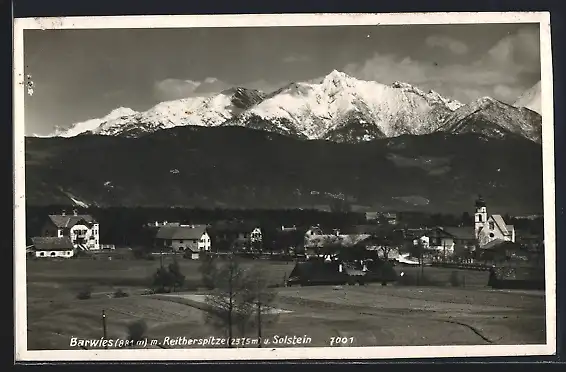 AK Barwies, Ortsansicht mit Reitherspitze und Solstein