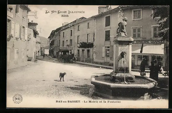AK Bas-en-Basset, La Mairie et la Fontaine