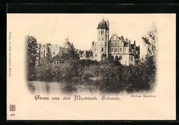 AK Basedow /Meckl. Schweiz, Blick zum Schloss Basedow