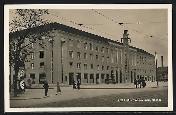 AK Basel, Ansicht vom Mustermessegebäude, Litfasssäule
