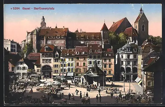 AK Basel, Barfüsserplatz mit Strassenbahn