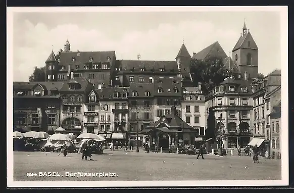 AK Basel, Barfüsserplatz mit Verkaufsständen