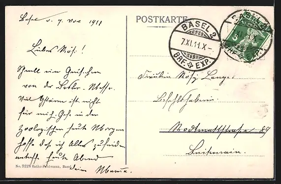 gelaufen 1911, Ecken bestoßen, guter Zustand