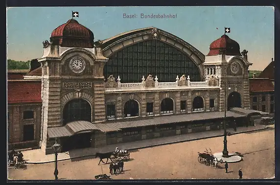 AK Basel, Bundesbahnhof mit Strassenpartie