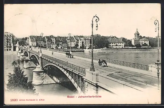 AK Basel, Johanniterbrücke im Sonnenschein