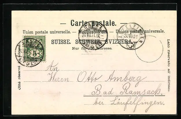 alte Ansichtskarte, gelaufen 1901, Stempelspur, guter Zustand