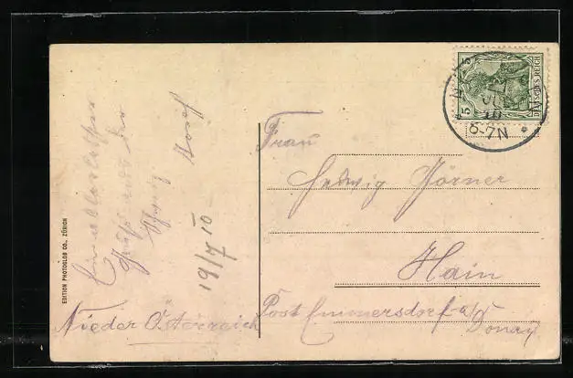 gelaufen 1910, Eckknick li. unten, Bugspur li. unten, guter Zustand