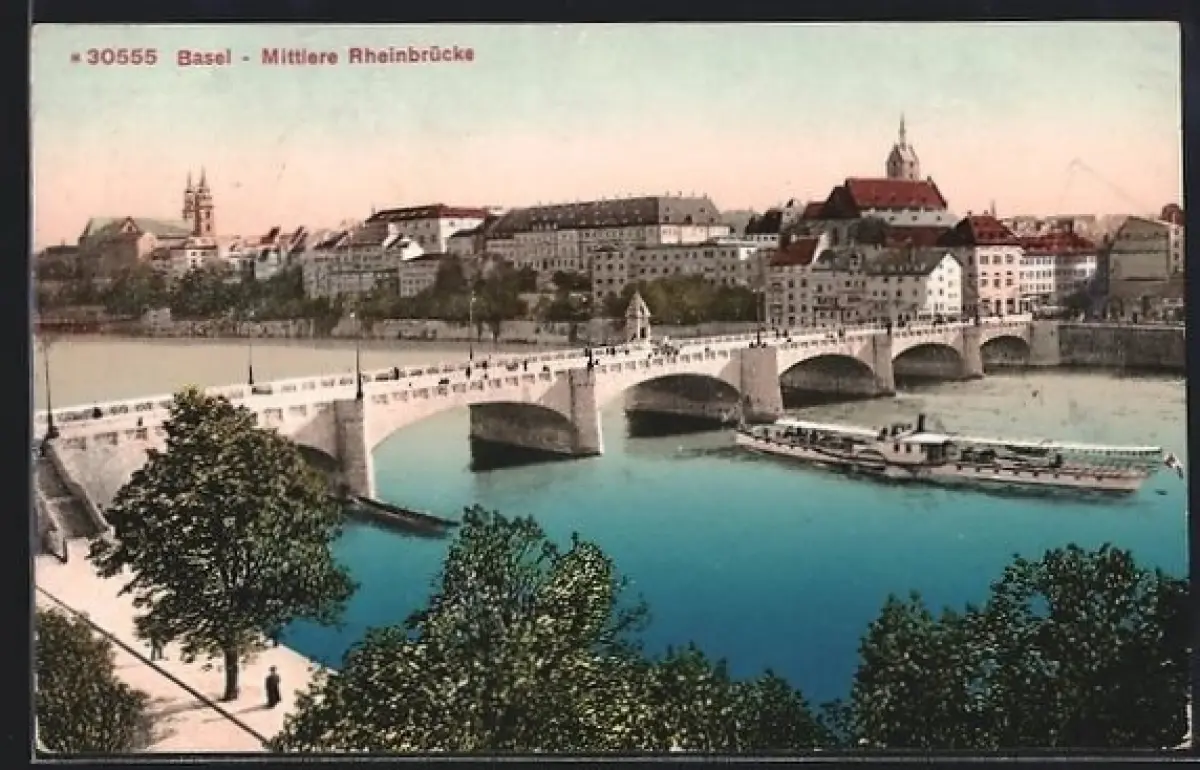 AK Basel, Mittlere Rheinbrücke