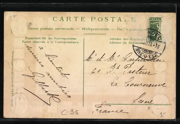 gelaufen 1920, Briefmarke entfernt, guter Zustand