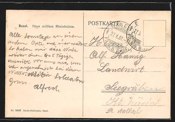 alte Ansichtskarte, gelaufen 1907, Briefmarke entfernt, guter Zustand