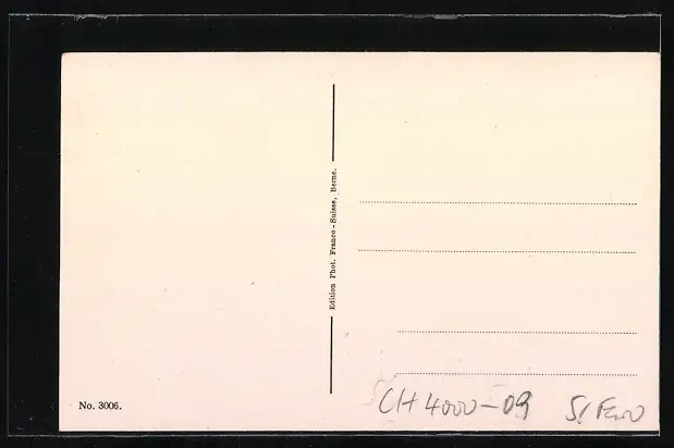 Personenbezogene Daten auf der Rückseite der Karte wurden durch blauen Textmarker unkenntlich gemacht. Die blauen Stellen sind auf die Vorderseite durchgeweicht und wirken sich negativ auf das Postkartenfoto aus