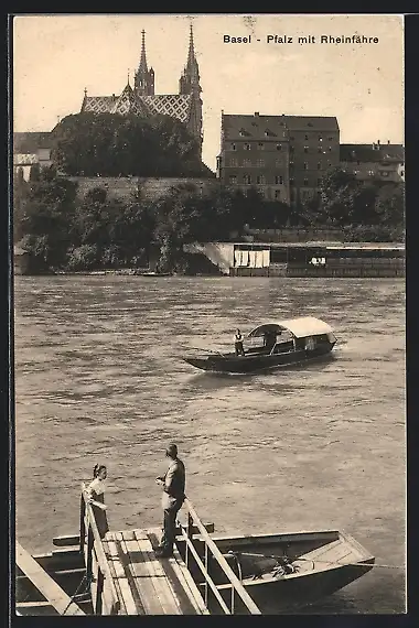 AK Basel, Rheinpartie mit Kirche