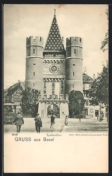 AK Basel, Spalentor mit Passanten