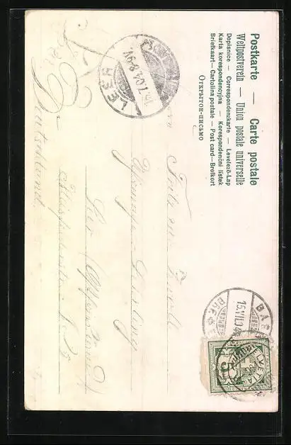 alte Ansichtskarte, gelaufen 1904, rückseitig Oberflächenschaden, guter Zustand
